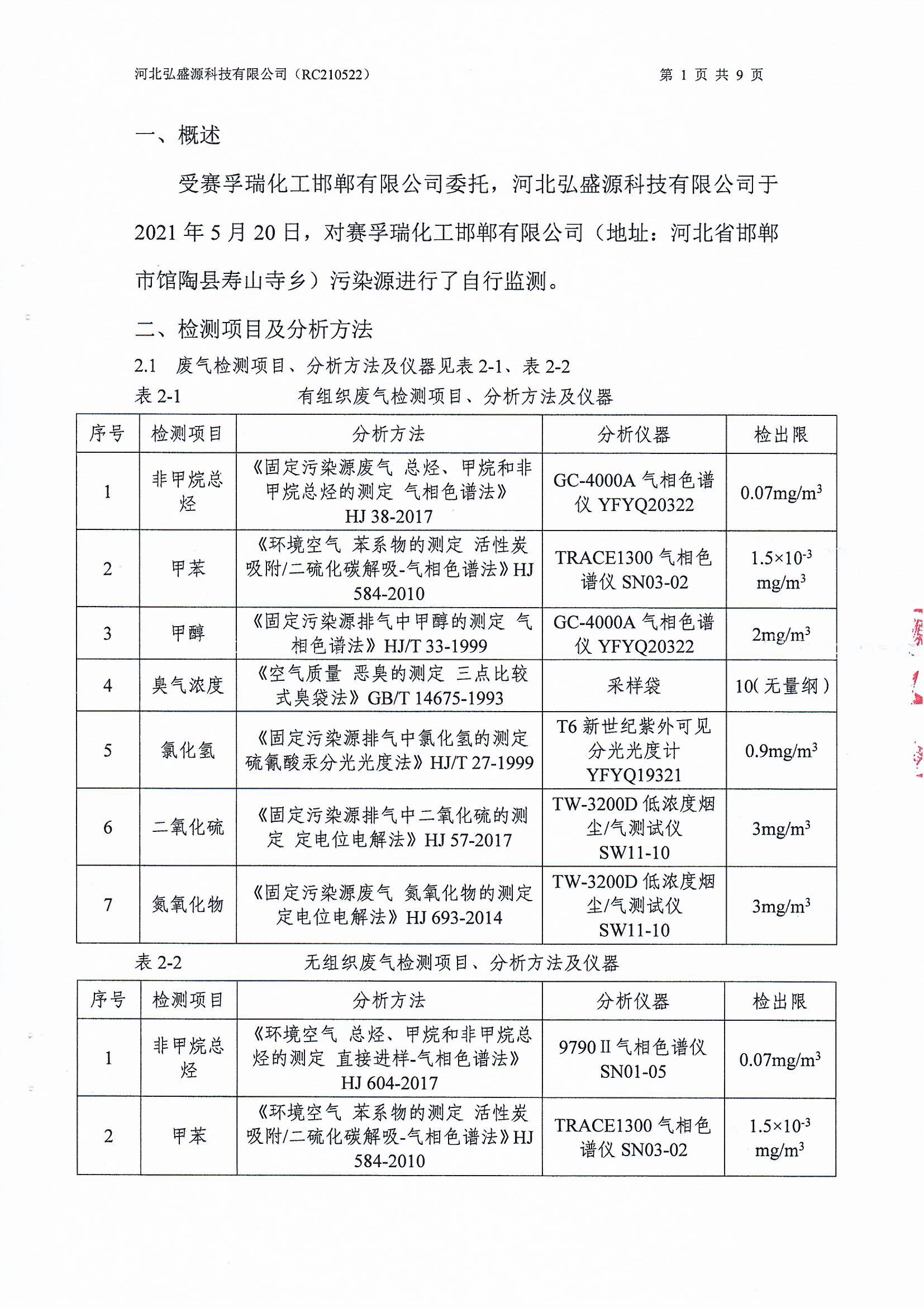 賽孚瑞邯鄲有限公司污染源自行監(jiān)測(cè)報(bào)告